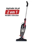 Esse modelo é 2 em 1, podendo ser usado como aspirador vertical para limpezas gerais e como portátil, com a haste removível, ideal para estofados, carros e cantos difíceis de alcançar[1][3]. O coletor de pó é translúcido, com capacidade de 1,3 litros, facilitando a visualização e limpeza. O cabo tem 4 metros de comprimento, oferecendo bom alcance durante o uso[1][3].